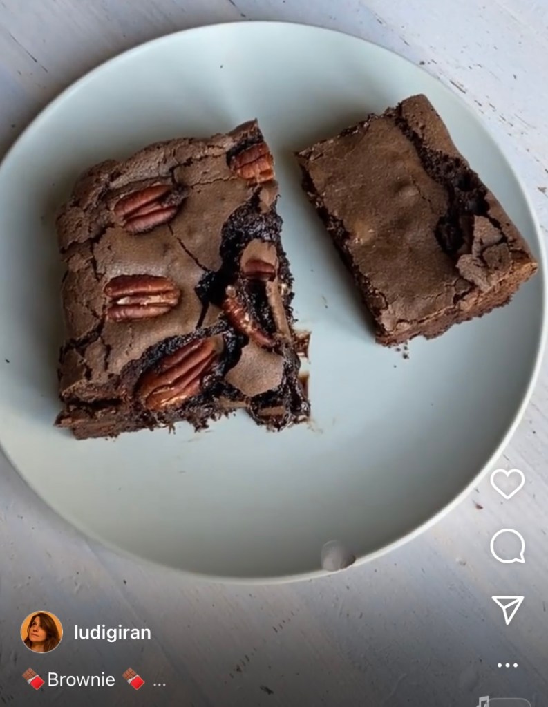 Nota Bene 2 : Pour ceux qui ne mettent pas de noix, possible de le saupoudrer de sucre glace une fois le brownie totalement refroidi, voire d’ajouter du caramel beurre salé à la pipette sur chaque part.